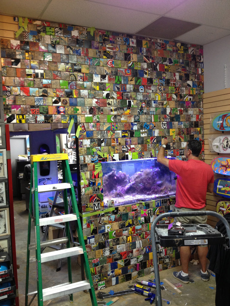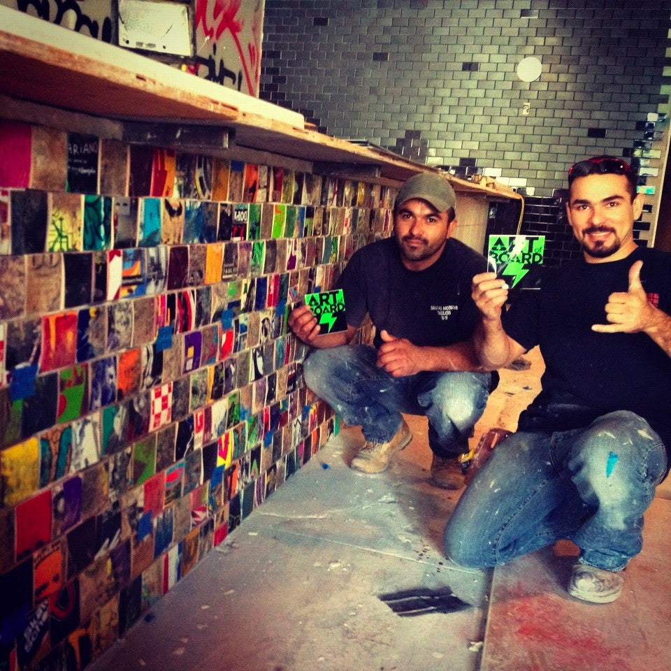 A joyful explosion of exuberance, this colorful collection captures the chaotic energy of the street. Handmade from recycled skateboard wood, every scrape is left in tact, creating a one-of-a-kind tactile pattern. Great for DIY projects and covering larger areas.