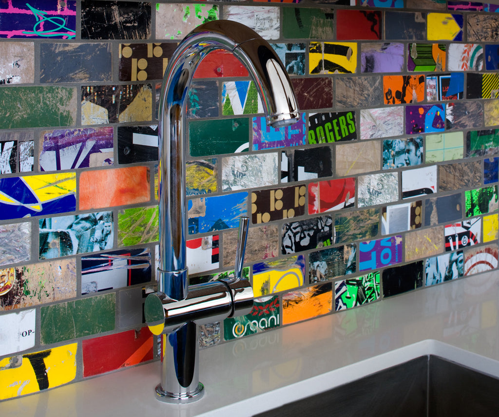 A joyful explosion of exuberance, this colorful collection captures the chaotic energy of the street. Handmade from recycled skateboard wood, every scrape is left in tact, creating a one-of-a-kind tactile pattern.